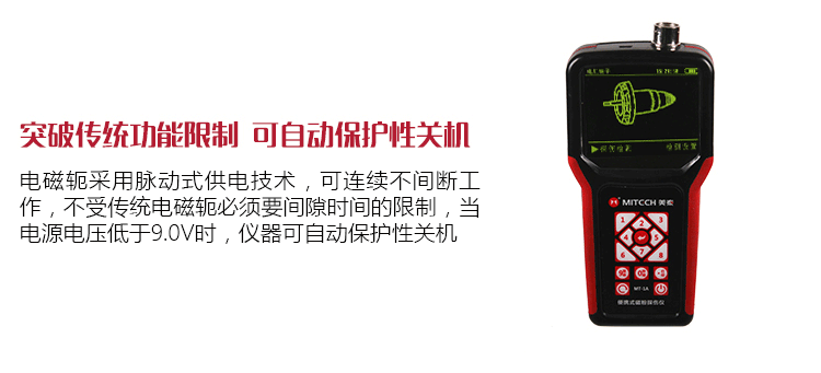 ?電磁軛采用脈動(dòng)式供電技術(shù),可連續(xù)不間斷工作,不受傳統(tǒng)電磁軛必須要間隙時(shí)間的限制,當(dāng)電源電壓低于9.0V時(shí),儀器可自動(dòng)保護(hù)性關(guān)機(jī)。