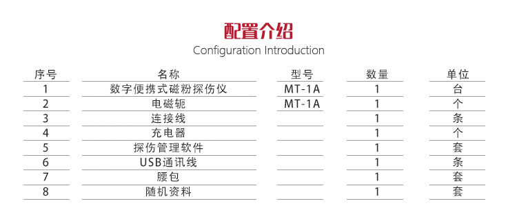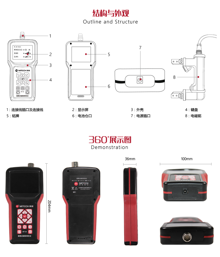 主機(jī)重量0.8 KG,電磁軛探頭重量1.5KG(含連接線)