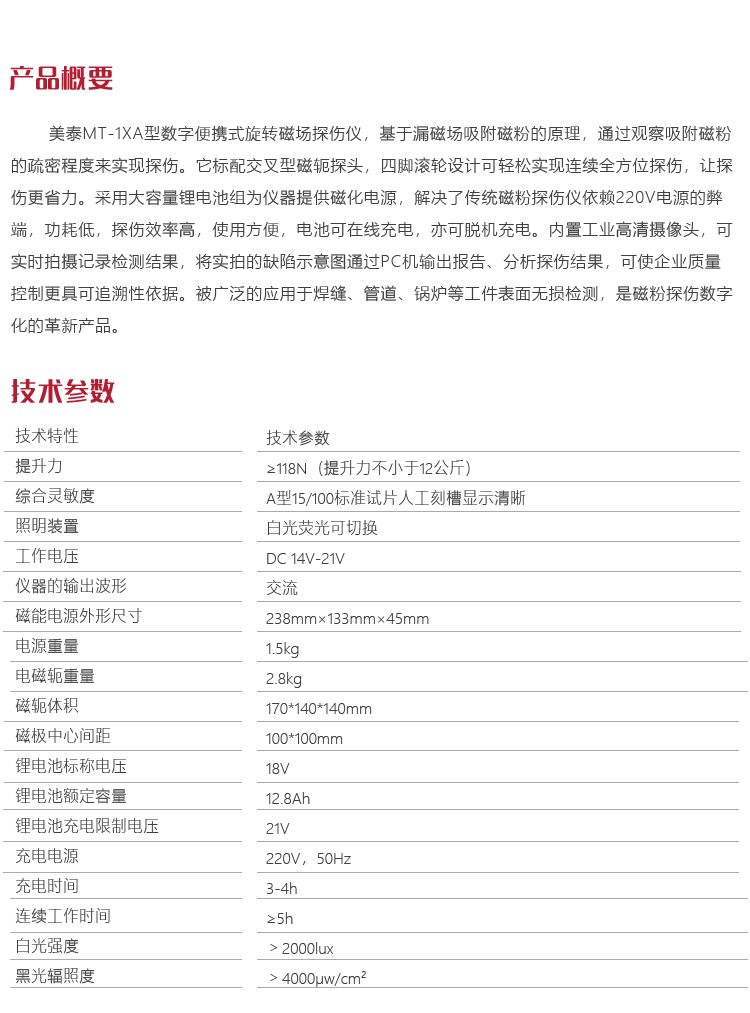 美泰MT-1XA型數(shù)字便攜式旋轉(zhuǎn)磁場探傷儀
