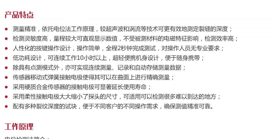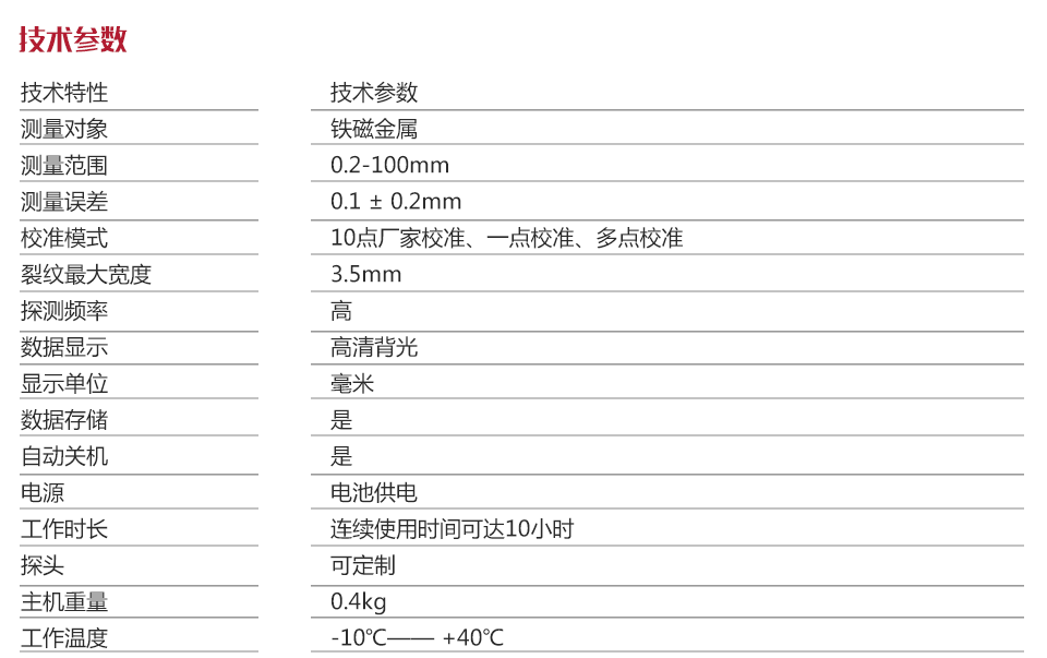 檢測(cè)靈敏度高,量程較大可直觀顯示數(shù)值,不受被測(cè)材料的電磁特征影響,檢測(cè)效率高;