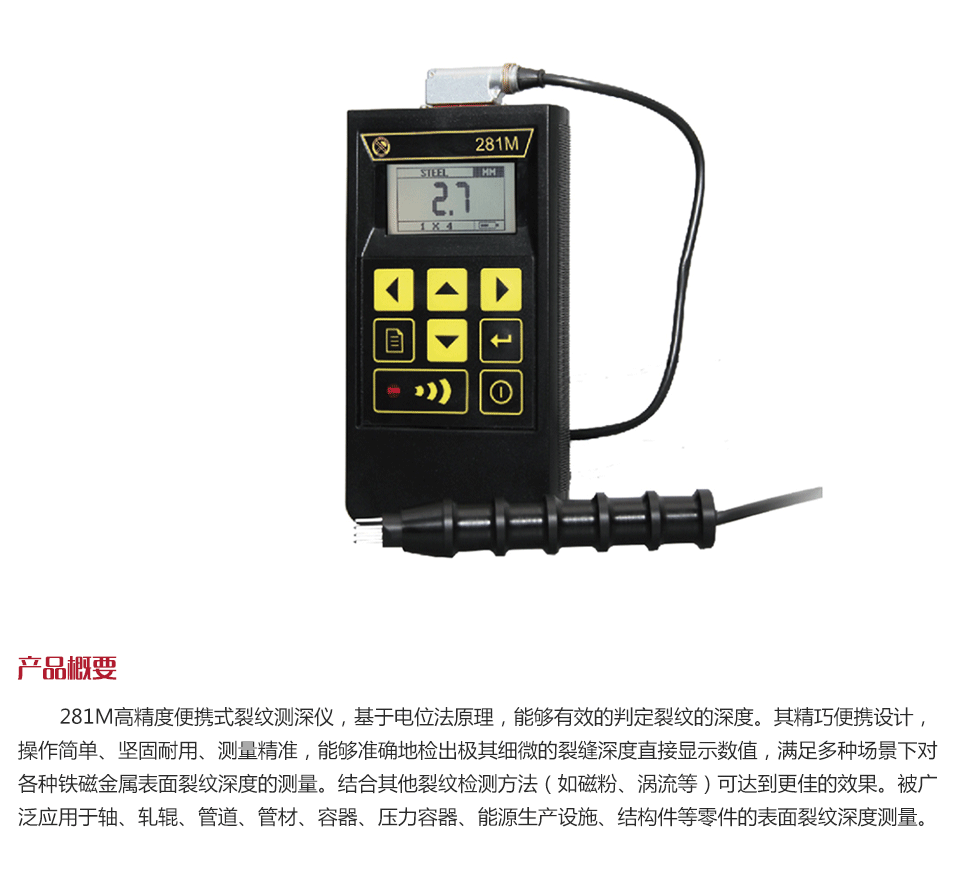 281M高精度便攜式裂紋測(cè)深儀,基于電位法原理,能夠有效的判定裂紋的深度。其精巧便攜設(shè)計(jì),操作簡(jiǎn)單、堅(jiān)固耐用、測(cè)量精