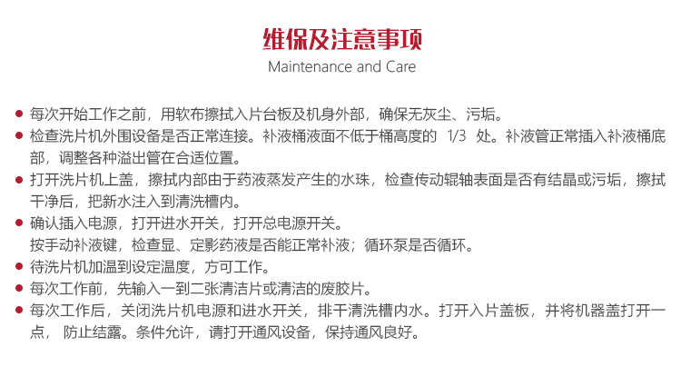 操作人員應(yīng)嚴格按照膠片沖洗規(guī)定,選用合格的高溫快顯機洗工業(yè)藥水。選用藥水應(yīng)在包裝處注明高溫快顯機洗標志,配比要求請按照藥業(yè)廠家說明配比,膠片沖洗說明和藥液沖洗說明相吻合。我們建議,客戶應(yīng)選擇有溶液機洗說明的高溫快顯藥水。