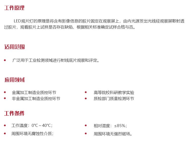 工作條件廣泛用于工業(yè)檢測(cè)領(lǐng)域進(jìn)行射線底片觀察和評(píng)定。