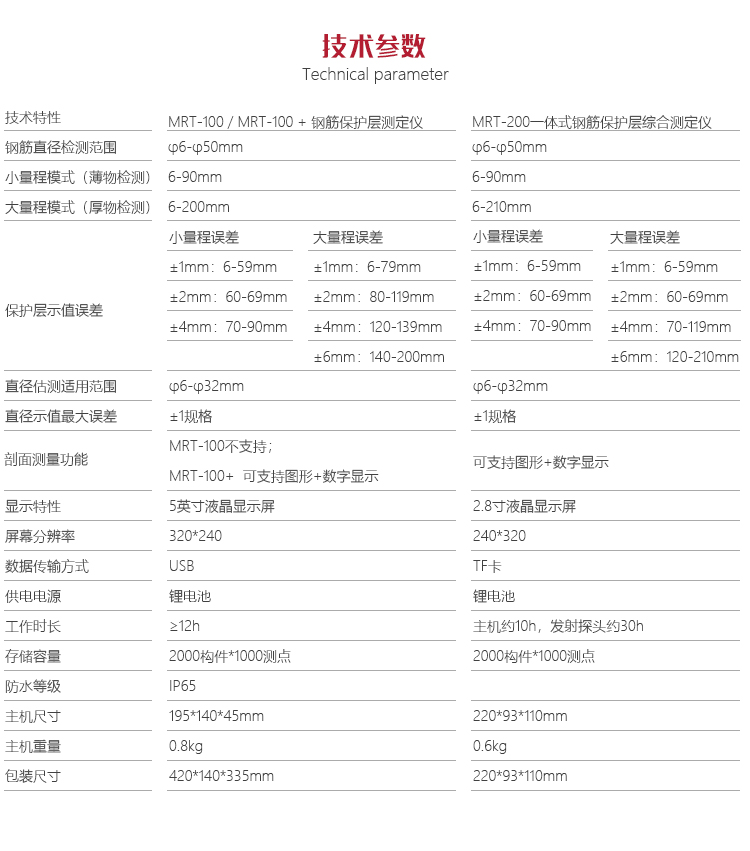 產(chǎn)品概述美泰MRT-200一體式鋼筋保護(hù)層測(cè)定儀,基于電磁感應(yīng)原理,采用一體化便攜式設(shè)計(jì),可快速無損檢測(cè)鋼筋位置、布筋情況,根據(jù)已知直徑檢測(cè)混凝土保護(hù)層厚度及鋼筋直徑。其測(cè)量速度快、測(cè)量精度高、性能穩(wěn)定可靠,適用于對(duì)現(xiàn)有鋼筋混凝土工程及新建鋼筋混凝土結(jié)構(gòu)施工質(zhì)量的檢測(cè),也可對(duì)非磁性和非導(dǎo)電介質(zhì)中的磁性體及導(dǎo)電體的位置進(jìn)行檢測(cè),如墻體內(nèi)的電纜、水暖管道等。是一款專業(yè)多功能智能型精密無損檢測(cè)儀器。