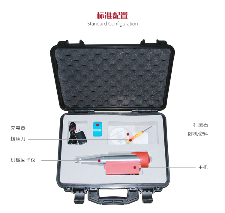 l 符合《回彈儀》(GB9138-2015)、《回彈儀法檢測混凝土抗壓強度技術規(guī)程》(JGJ/T23-2011)、《超聲回彈綜合法檢測強度技術規(guī)程》(CECS02:2005)等相關標準。